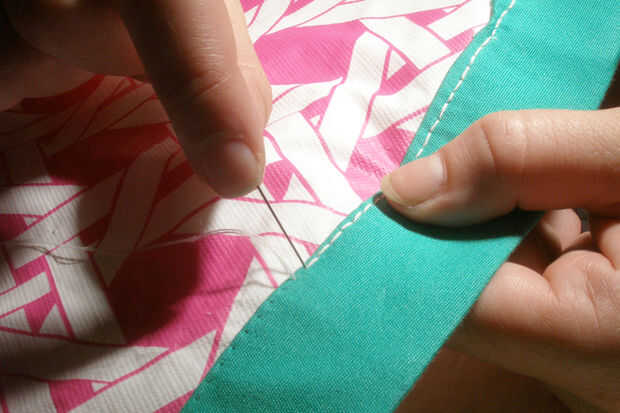 Una vez que haya terminado con el borde inferior del faldón, querrá hacer otra puntada de borde en todas las aristas que no han sido cosidas, sin embargo, manteles de plástico fray no, así que esto es opcional.