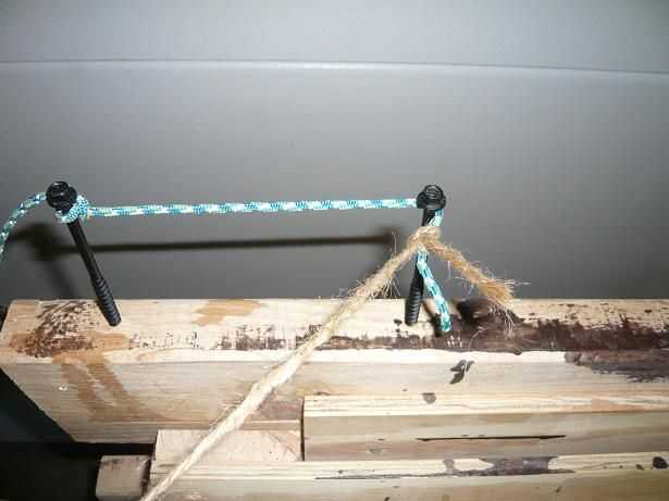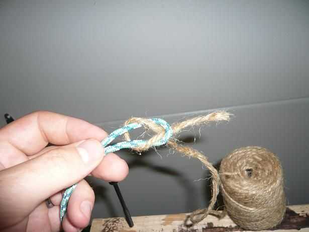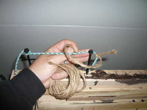 ---Utilizar un segundo tornillo para crear un punto de bucle justo antes del nudo cuadrado que acaba atada.