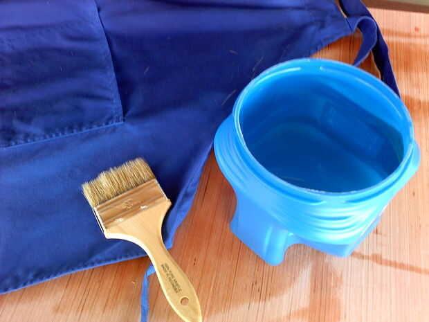 Después del endurecido durante 2 días, echó agua en el tablero y el delantal.