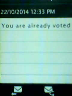 Si el votante ha ya utilizado su voto, que no se puede votar otra vez es decir, incluso si envía otro voto que no se registrará y recibe un reconocimiento que dice ya votaron.