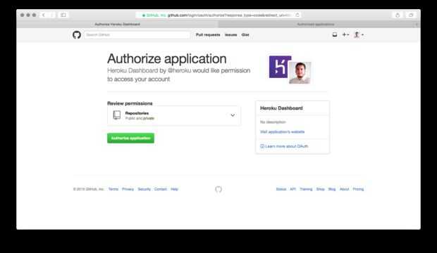 Autorizo a Heroku para acceder a tu cuenta de GitHub.