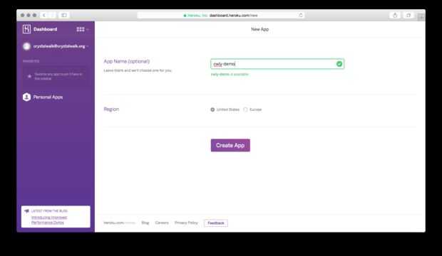 El segundo paso es crear una aplicación en tu cuenta de Heroku. Nombre de la aplicación definirán el URL para la instancia de la aplicación: