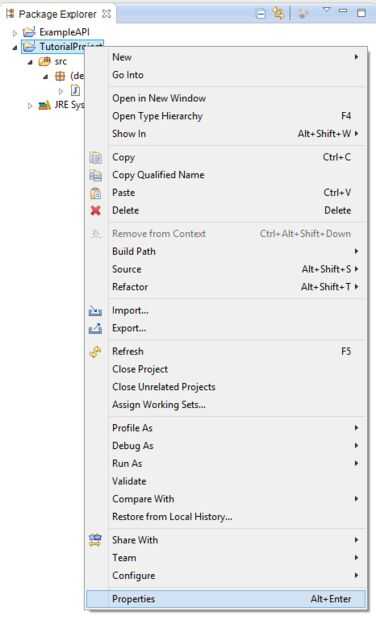 1. Comience por clic derecho en su nuevo proyecto (para mí es TutorialProject), luego seleccione Propiedades.