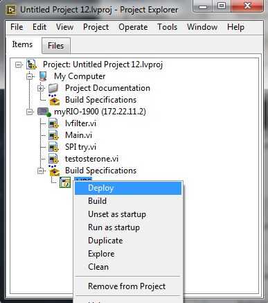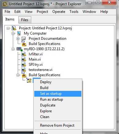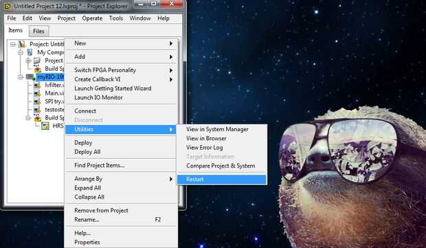 Una vez hecho eso, click derecho sobre el myRIO y seleccione Utilidades--> Restart para reiniciar el myRIO y su aplicación se ejecutará en el inicio. Unos 10-15 segundos después de apagarse el LED de estado, la aplicación pondrá en marcha.