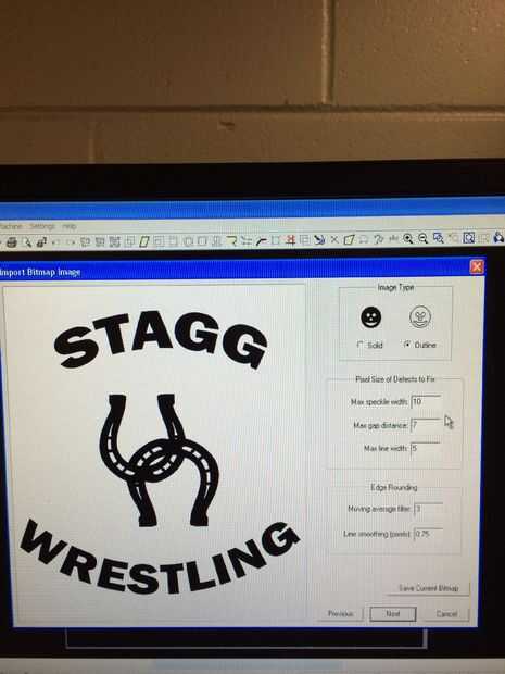Importar y convertir el archivo tienes que ir a archivo > Importar. Continuación, seleccione el archivo que se desea trabajar con, en este caso se llama "FALL2014 de lucha del cargador" select y luego abierta. Cuando se abre la pantalla de 'imagen de mapa de bits importación' Asegúrese de que 'Mostrar imagen en plano' esté desactivada, 'secreta imagen a vectores' está marcada y que se establece en blanco y negro. A continuación, haga clic en el fondo blanco para que el programa puede distinguir entre los diferentes vectores. Continuación, haga clic en siguiente y seleccione imagen tipo 'sólido' (a diferencia de en la foto) porque la imagen nos estamos convirtiendo es sólida. Si la imagen era sólo líneas queremos elegir 'outline', sin embargo si la imagen no resulte después que se convierte luego que tenga que cambiar la configuración. Seleccione 'siguiente'.