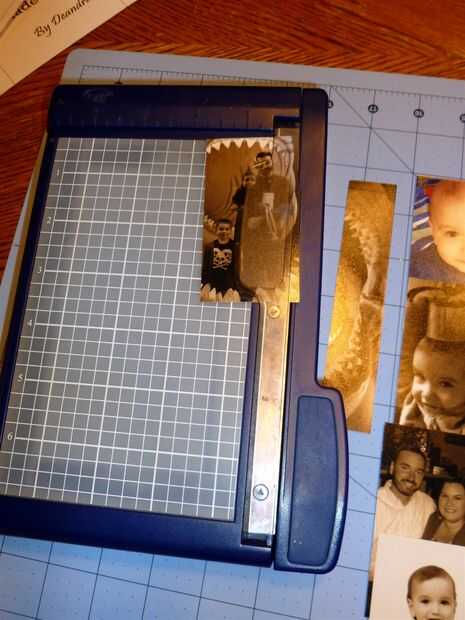 Después de medir el ancho de la estera, utilicé un cortador de la foto y un par de afiladas tijeras cortar y recortar las fotos hacia fuera el tamaño de los bordes y en las esquinas.