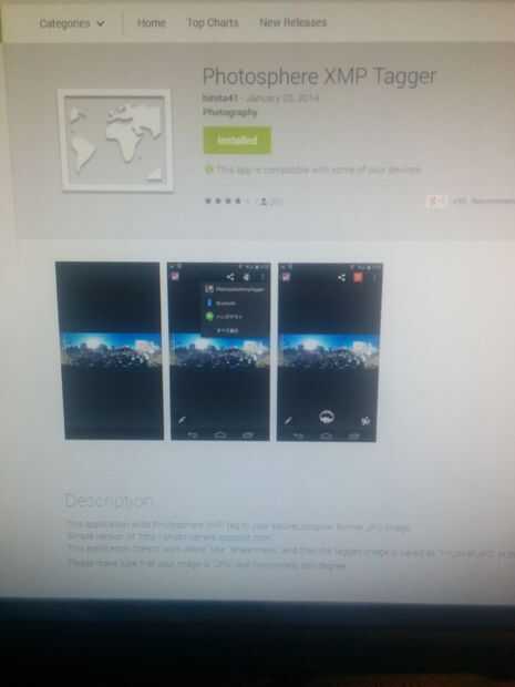 Instalar la aplicación en google play store, ir a su galería de fotos, encontrar la foto que desee agregar etiquetas en. y utilizar "Compartir menú" y luego se guarda la imagen etiquetada como "*** _XMP. JPG"en la misma carpeta.