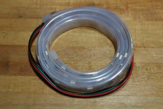 El tricolor tira de LED tiene 3 cables que salen de él.