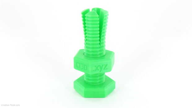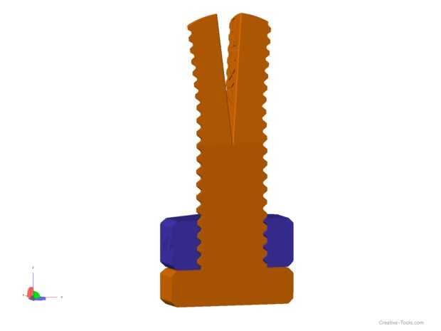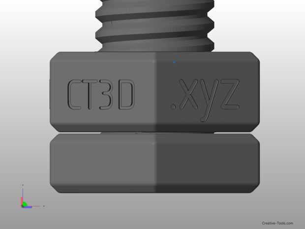 Este archivo para imprimir 3D muestra una característica que puede utilizarse en la impresión de 3D. La tuerca y el tornillo son partes separadas de un mismo archivo STL. Dejando un pequeño espacio (aproximadamente entre 0,2 y 0,5 dependiendo de su impresora 3D y configuración de impresión) es posible que uno objeto resto y adherirla a otro durante la impresión de 3D, pero todavía desmontable.