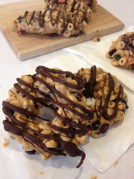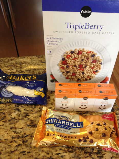 La receta que utilizamos para hacer llamado para 1 taza de jarabe de maíz, 1 taza de azúcar y 1 taza de mantequilla de maní. En esta receta, reemplacé la taza de azúcar con virutas de coco, porque no quería tanta azúcar en los dulces. Salió la textura un poco diferente, pero el sabor no fue comprometido.