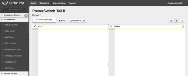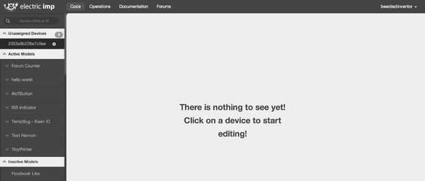 Lo primero que debemos hacer es crear un nuevo modelo. Un modelo es un proyecto Imp eléctrico que consta de código (código que se ejecuta en el hardware) y código de agente (código que se ejecuta en la nube eléctrica Imp).