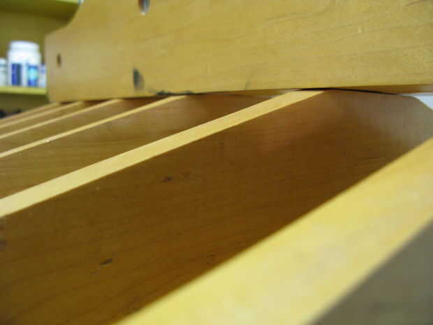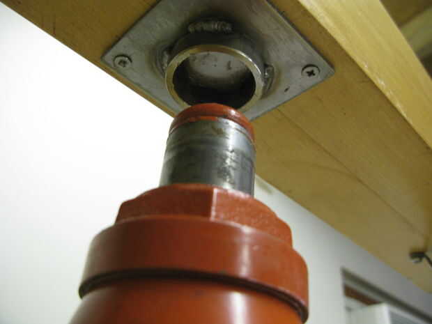 - Coloque el gato de la botella en el centro de la barra de centro y alinear la parte superior del gato con la guía de gato de botella en la parte inferior de la barra superior.