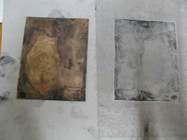 - Haceos la cara vista de placa grabada entintada sobre el papel.