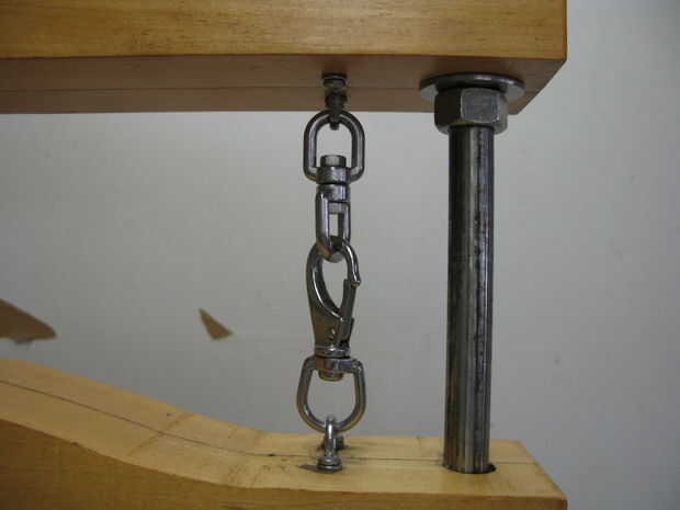 La barra central debe ser elevada y mantiene en su lugar con el broche de presión ganchos/gira sobre un eje.