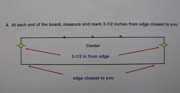- En cada extremo de la tabla, mida y marque el 3-1/2 pulgadas desde el borde más cercano a usted.