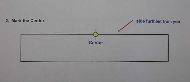 - Marque el centro de la longitud en el borde más alejado de usted.