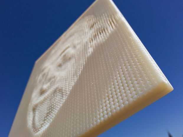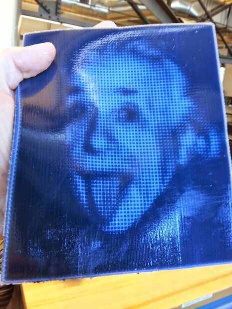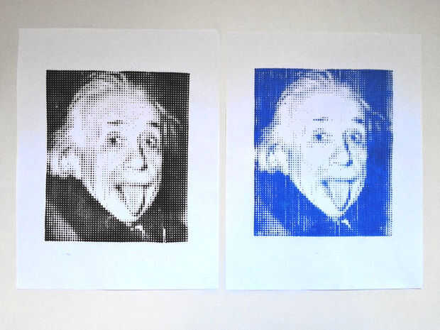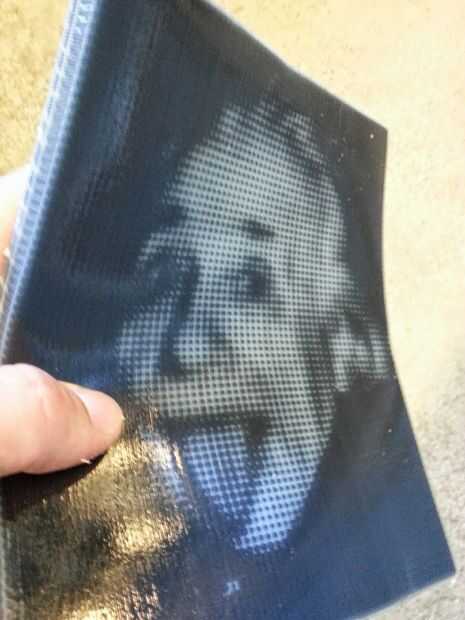 También resulta que el plástico duro causa "globos" de la tinta de impresión se acumule en la superficie. Otra vez, mira el azul y negro impresiones de Einstein. La impresión azul tiene globos gruesos de tinta restante en la superficie del papel, donde el negro impresión salió mucho más suaves.