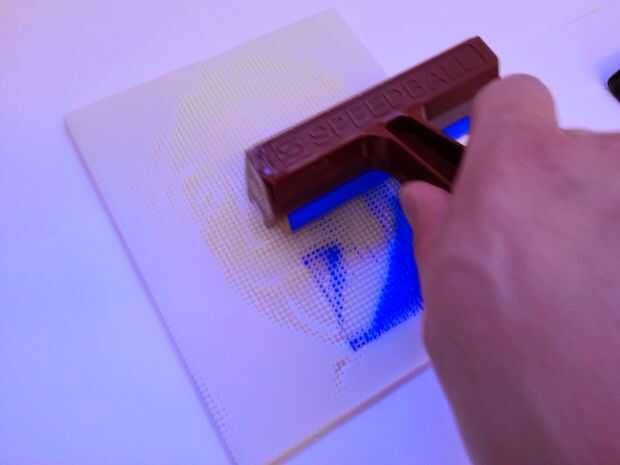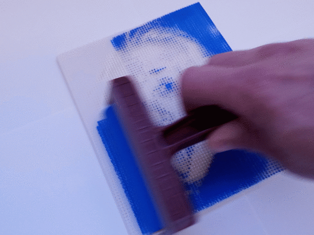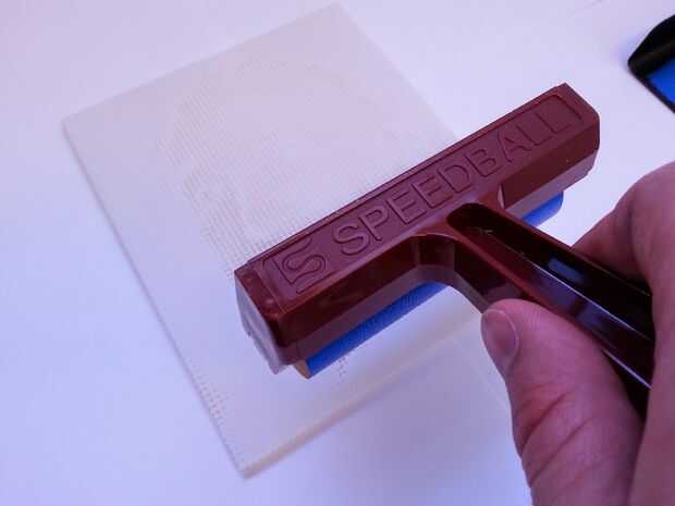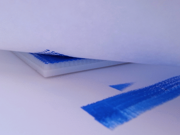 4. Coloque cuidadosamente los papel por encima de la placa entintada