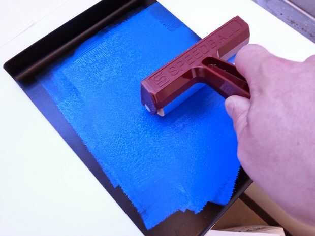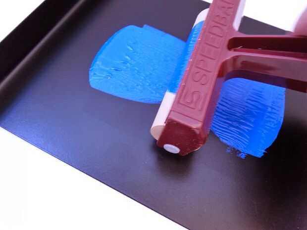 1. exprimir un poco de tinta sobre su placa de tinta (lo negro plano)