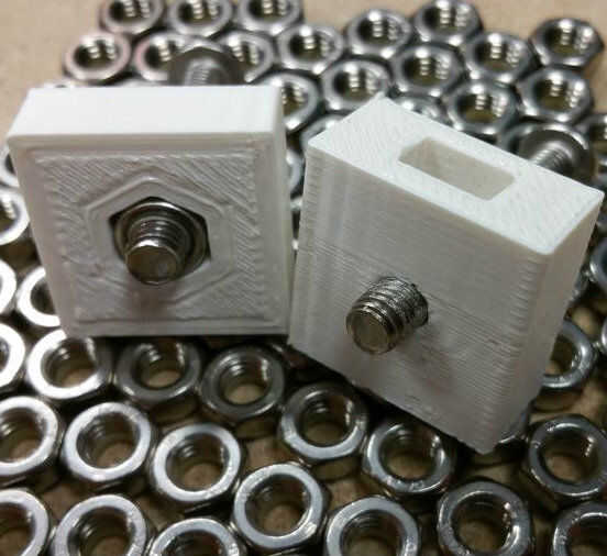A menudo soy responsable por piezas de prototipado rápido en el trabajo como ingeniero mecánico. Regularmente mis diseños requieren el uso de tuercas capturados en conjunto piezas juntos. Es posible agregar una pausa en la impresión 3D e incrustar las tuercas, pero a menudo mis impresiones días y correr cuando no estoy alrededor colocar las tuercas en la impresión.