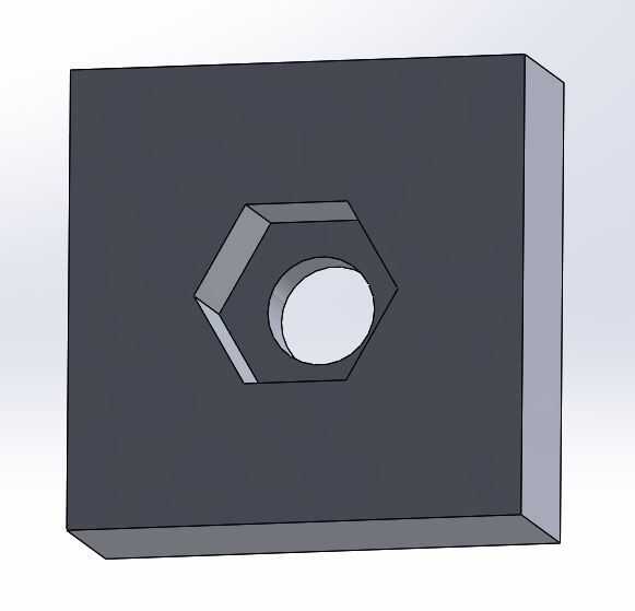 Ahora hacer un corte extruido (o bolsillo dependiendo de tu CAD) es una capa de impresión 3D capa de espesor mayor que el espesor de la tuerca como se muestra en la tercera foto de este paso. Para mi M6 tuerca nylock es 0.23 + 0.01 = 0,24 en (5.84 +.254 = 6,1 mm). Aviso que redondeado a dos decimales ya que esta es la resolución de mi grueso de la capa de las impresoras 3D.