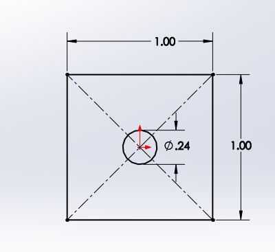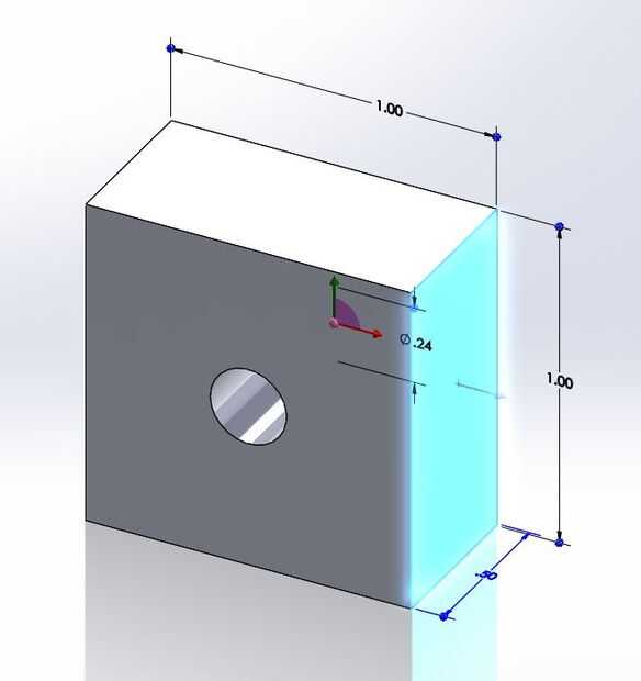 Así que hay una tuerca en un duro llegar a punto. Esto requiere una ranura. En mi ejemplo yo otra vez comenzar con un cuadrado simple y crear un agujero para mi perno que es 0,001 (0,0254 mm) mayor que el diámetro del perno.