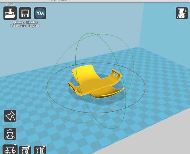 Carga tu. STL archivo y aplicarse a cualquier rotación/escala, etc. puede que necesite. Asegúrese de haga clic en "Lay Flat" luego para asegurarse de que la parte quede al ras con la plataforma de fabricación de la impresora.