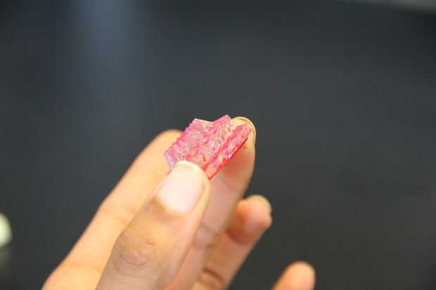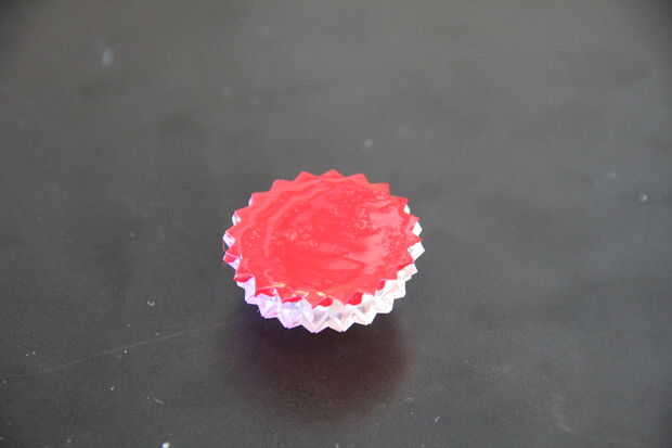 He encontrado que eso del pulimento de clavo actúa como un gran final para las impresiones. Para éste, pinté la base roja y la parte superior con esmalte claro. El esmalte claro crea una superficie clara y reflexiva y la base color es una impresión que es ópticamente diferente dependiendo de qué ángulo se lleva a cabo.