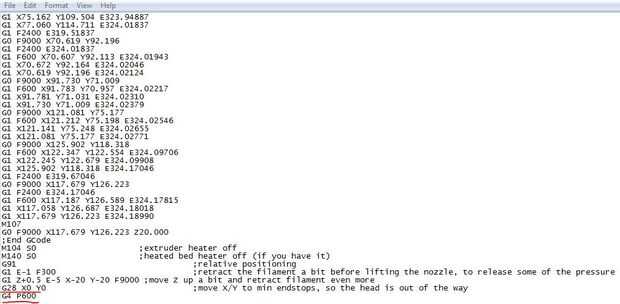 Así lo hemos hecho, desde nuestro escritorio de trabajo, o nuestro portátil en el aeropuerto hemos iniciado nuestra impresión, lo acabado verificado, retiró y comenzó otra. En este paso final le gustaría mostrar cómo empalmar 2 impresiones con un pausa de 10 minutos, para la eliminación de impresión. Si nos fijamos en el código de G en las imágenes de arriba he subrayado exactamente donde la pausa/arranque impresión extremos. Esto tomará algunas manipulaciones sobre exactamente cuánto tiempo de pausa es querido, pero a través de escritorio remoto, puede configurar fuera de casa. Todo el proceso es bastante sencillo y realmente sólo toma conocimiento de copiar y pegar para hacer. Abre la primera impresión deseada, hacia el final del G-code (sugiero hacerlo de esta manera y no cambiarlo en su máquina de cortar para evitar despeinarte impresiones futuras por olvidar le cambió el final G-Code) y quitar las líneas de final (como se destaca en la imagen), que deberían ser M84 y G90. Después se retiran agrega G4 P(time in seconds), así que si quieres hacer 10 minutos G4 S600, si quieres 1 minuto hacer G4 S60. A continuación, abra el siguiente archivo de código de G que desea agregar y copiar y pegar después de la línea G4 S600. HECHO, ahora sólo empezar tu impresión y asegúrese de que quita la parte de la impresión depende de cama antes de los 10 minutos. Nota: Si la impresión no es removida en la sección de pausa que tenga algunos problemas... sólo asegúrese de quitarlo!!!