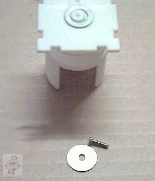 La ruleta se lleva a cabo en la placa superior con una arandela separadora (diámetro interior grande) y una arandela de retención (diámetro interno pequeño) y tornillo autorroscante. Se perforó un orificio piloto de este tornillo. Esto debería permitir que la ruleta gire sin bamboleo. El eje se extiende por encima de la tapa por una pequeña cantidad para permitir esta segunda arandela.