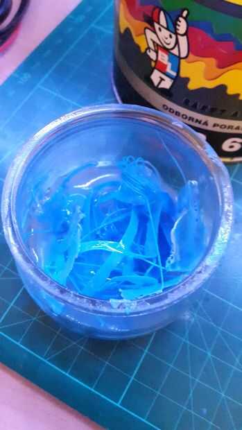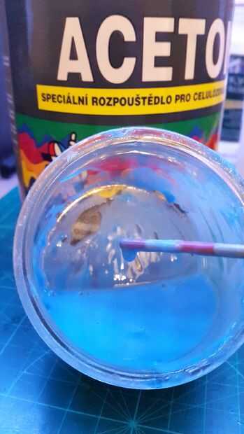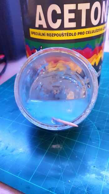 Utilizar cualquier tipo de recipiente de vidrio, mezcla ABS se puede quitar fácilmente de eso tazón de fuente después de curación completa. Utilice el mismo color del plástico del ABS como utiliza para sus impresiones. Utilizar cualquier parte exceso, cortar bordes, estructuras de apoyo e incluso cortar filamento a pellets para ser disuelto en acetona. Puesto de acetona 2-4mm en la parte inferior del recipiente. Utilice brocheta para mezclar y manipular con la mezcla, cualquier tipo de cepillo de pintura será destruido por la mezcla. Mezclar la mezcla para disolver todos enormes ABS trozos sin disolver completamente pueden usarse para rellenar grandes agujeros en el modelo, tiempo al tiempo. Colocar el vaso al lado cuando la mayoría de ABS líquido. Para empezar con mejor viscosidad cuando es caída de restos de mezcla en pincho (no caiga). Si ha terminado y la mezcla sigue siendo, hacer algunos agujeros y colinas por pincho a la mezcla antes de que seque totalmente, ayudará a disolverlo próxima vez. Partes conectadas o cubiertos con la mezcla son más fuertes cuando mezcla cura completamente.