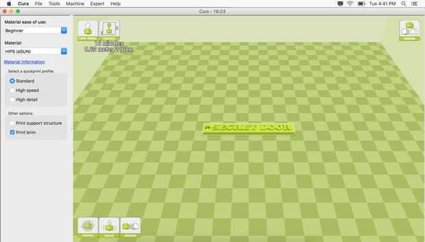 -Ahora tu. Archivo STL en Cura que es el programa de corte para el 5 de Taz. Abra Cura y tu. Archivo STL. Usted debe ver su diseño representado en el printbed.