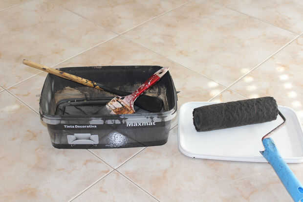 El color elegido para el fondo de la finca es de color negro. Se necesita alguna pintura interior negra y un pincel. El color de fondo ayudará a resaltar las impresoras 3D.