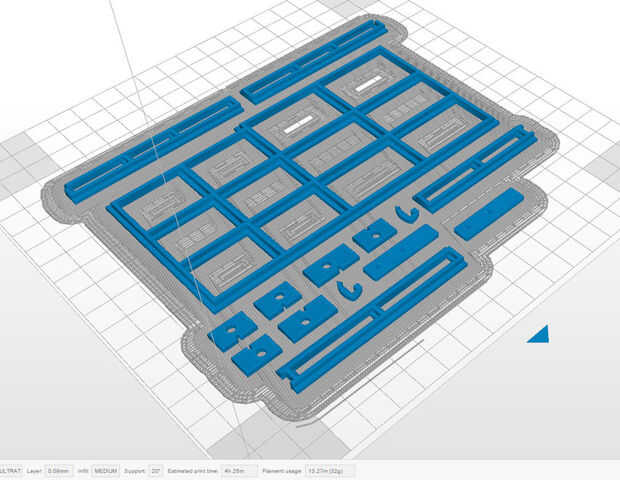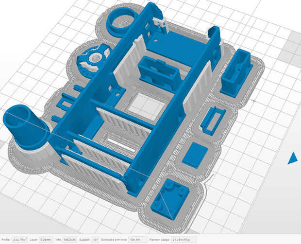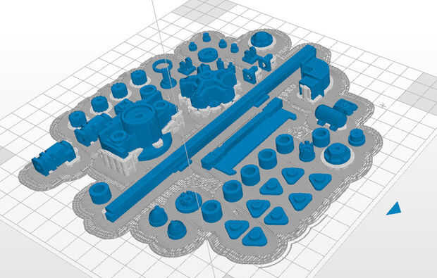 Terminado el modelado, las piezas se han agrupado en los diferentes colores de la impresión final,