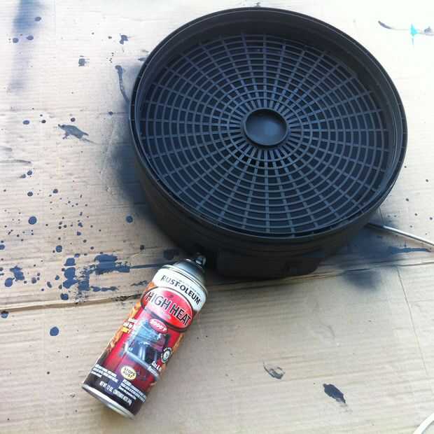 Después corté la parrilla he decidido pintar las partes deshidratador. Esto es puramente opcional y sólo lo hice porque mina fue usado/viejo/feo y no tenía ninguna intención de nunca volver a usar esto para el alimento, y el negro parecía mucho mejor. Si usted compra un deshidratador nuevo no pinto lo porque es más trabajo sin ningún motivo y usted puede usarlo para alimento demasiado.