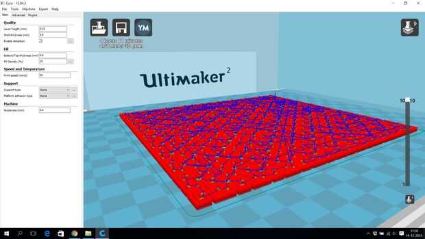 Hacer el patrón obtenido utilizables para impresión 3D se realizó con la ayuda de Illustrator y Solidworks. En general, debe crearse un espesor de pared para usar el bosquejo en Solidworks y se debe crear un objeto imprimible en SolidWorks. Los diferentes pasos en Illustrator, Solidworks y la impresora 3D (Ultimaker) serán poco explicados aquí abajo.