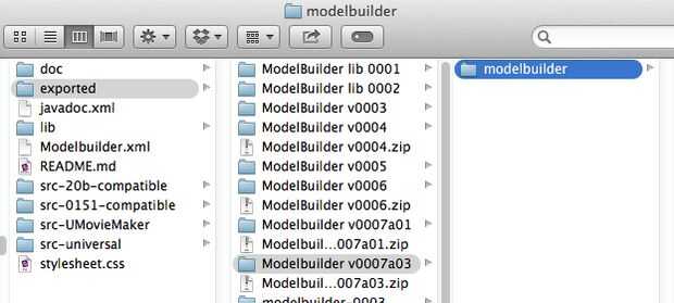 También debe tomar código de Modelbuilder de Github. En la carpeta principal de modelbuilder, desplácese para exportar > v0007a03 Modelbuilder. La carpeta dentro, llamada modelbuilder, es lo que debe mover a la carpeta de bibliotecas de procesamiento.