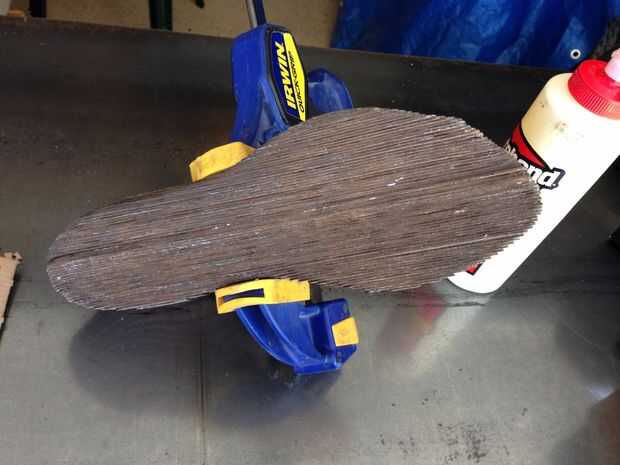 Aplique el pegamento a la cara más grande de la última mitad, alinear por el ojo a la otra mitad última y empotrar. Es especialmente importante que este pegamento no tener demasiado pegamento, otra manera que pueda deslizarse alrededor como se aprieta la abrazadera. Deja al menos 15 minutos.