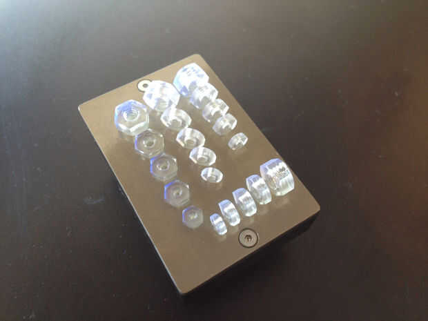 Usé el mismo proceso como mis intentos previos para preparar los modelos para impresión. He descargado los modelos de tuercas que van en tamaño desde 1/4-20 4-40 desde el sitio web de McMaster-Carr. Estos fueron importados en Inventor y arregla en volumen de fabricación de Ember.