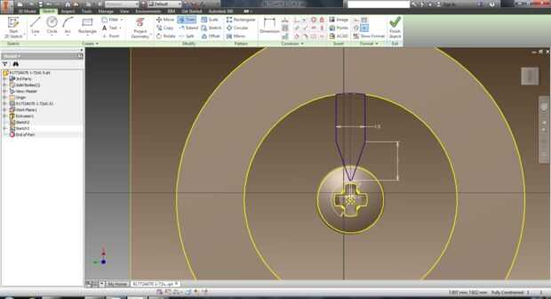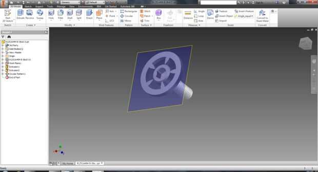A medida que aumenta la dimensión z de la parte, esfuerzo de torsión adicional se genera en la interfaz de cabeza parte de construir debido a la acción de separación de la impresora. Posteriormente, he añadido material de apoyo para anclar más los tornillos a la cabeza de la construcción. No era necesario ninguna geometría de apoyo para las tuercas ya que la "proporción" de las partes me llevó a creer que la superficie de la pieza es suficiente para habilitar la impresión de éxito. Aunque es posible utilizar MeshMixer para automáticamente generar apoyos para brasa, creé manualmente geometría de apoyo para los pernos en Inventor. La geometría del soporte se añadió a cada modelo de perno creando un dibujo referenciado contra la geometría del perno que fue sacada y con dibujos.