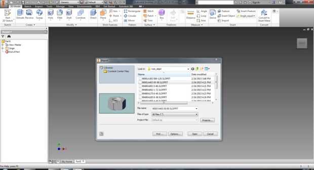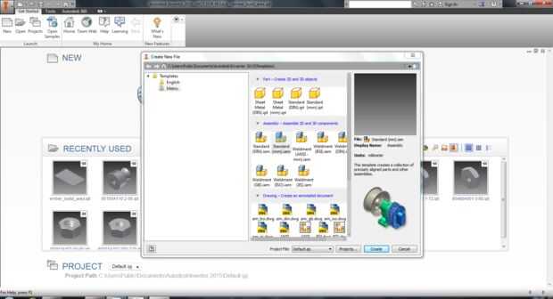 Después de descargar los modelos en 3-d formato de Soldworks, cada archivo se importó en inventor para crear un archivo de Inventor correspondiente. Al crear la parte de Inventor, es importante empezar con la plantilla de mm para asegurar la compatibilidad con cortadora en línea de Ember.