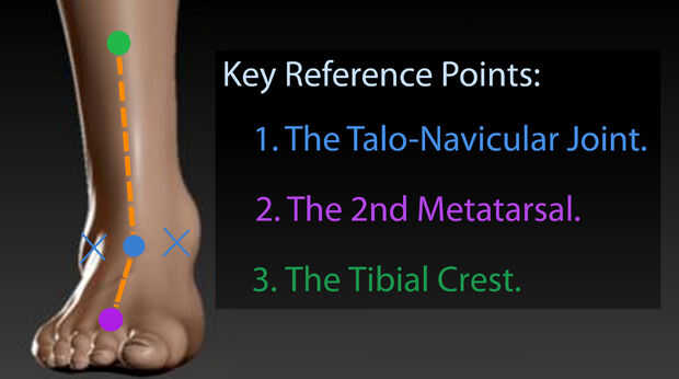 * todos estos puntos se muestran en la primera imagen! Marque cada punto como se muestra. Dibujar una línea abajo de la cresta tibial a la interseaction de los puntos de talo-navicular. Trazar una línea desde el segundo metatarsiano a este punto, bisección así.