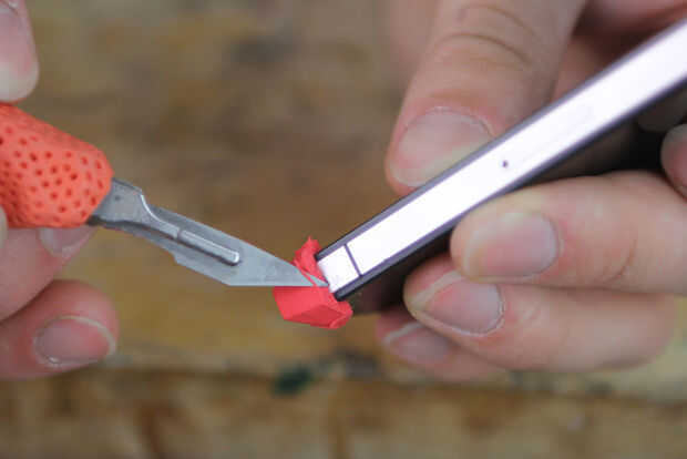 Una vez curado utilice un bisturí para limpiar el exceso flash del teléfono.