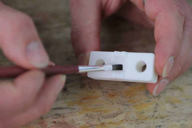 Aplicar una fina capa de jabón líquido a la tercera pieza del molde. Ahora estás listo para el proceso de formación.