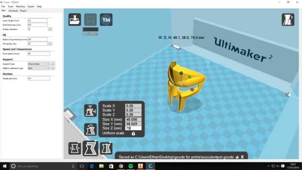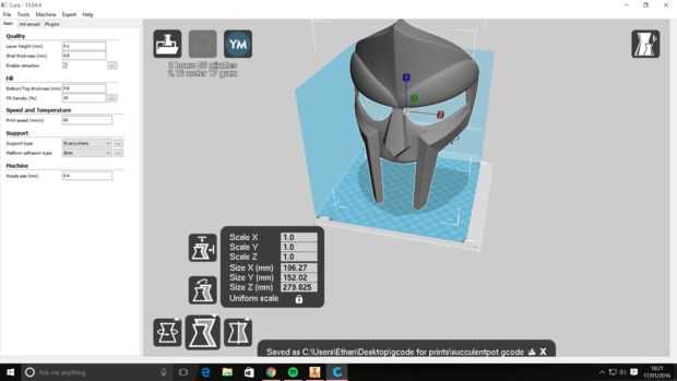 Para reducir el modelo simplemente usaremos la herramienta escala en la parte inferior como se muestra. Me parece más fácil que mantener el botón de escala uniforme trabó y achicar la altura z. Quería la máscara a 70mm de alto, así que entré en 70 y presiona enter. ¡ simple! Usted puede sentirse libre establecer cualquier tamaño que desee, pero parecía cómodo y alguno más pequeño habría perdido el detalle en la impresión.