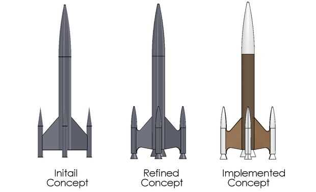 Empecé con un cohete de tres fin básico y había añadido algunas góndolas simple.