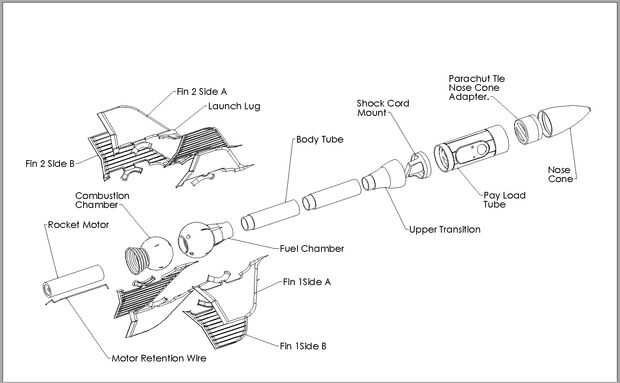 Cuando todos los componentes estén secos, insertar un motor ficticio o motor usado en la cámara de combustible y cámara de combustión.