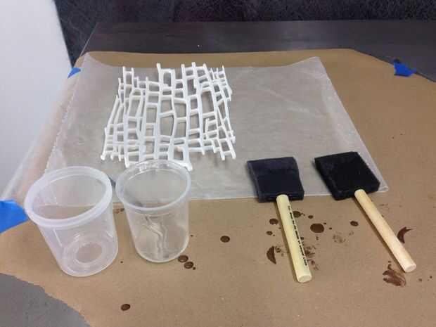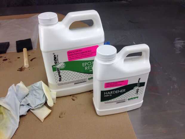 Siga los pasos de la etapa anterior a su espacio de trabajo de preparación, es aún más importante con resina epóxica parte 2 ya que tienes un tiempo limitado pot. SuperSap permanecerá viscoso durante unos 20 minutos.
