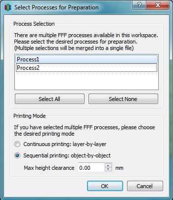 Para generar el código g en Simplify3D, haga clic en al botón de imprimir en la parte inferior izquierda y un cuadro como que arriba se abrirá para la preparación. Vamos a guardar los procesos por separado para que nosotros podemos ejecutar individualmente en la impresora.