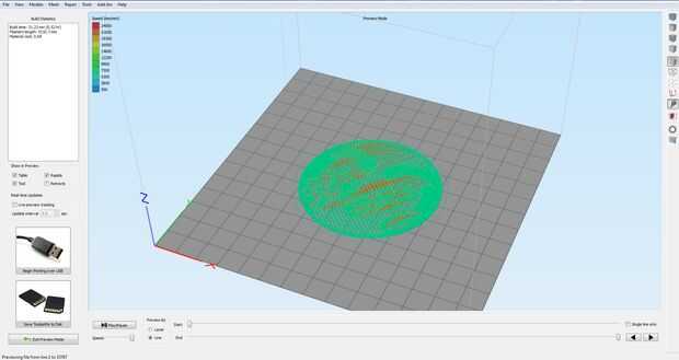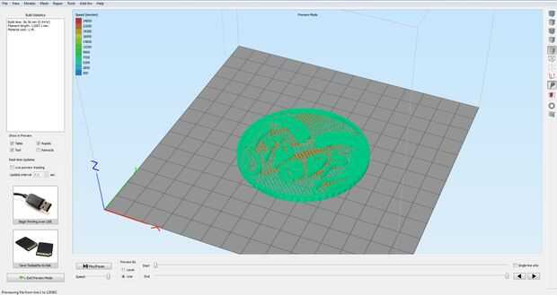 Seleccione su primer proceso y haga clic en Aceptar. No tiene que preocuparse por la sección de modo de impresión ya que sólo estamos seleccionando un proceso. Una vez que se carga la vista previa, haga clic en las trayectorias de herramienta guardar botón de disco en la parte inferior izquierda y el nombre su archivo algo inteligente con "base" o "inferior" en el nombre es decir, CSUbase.gcode.